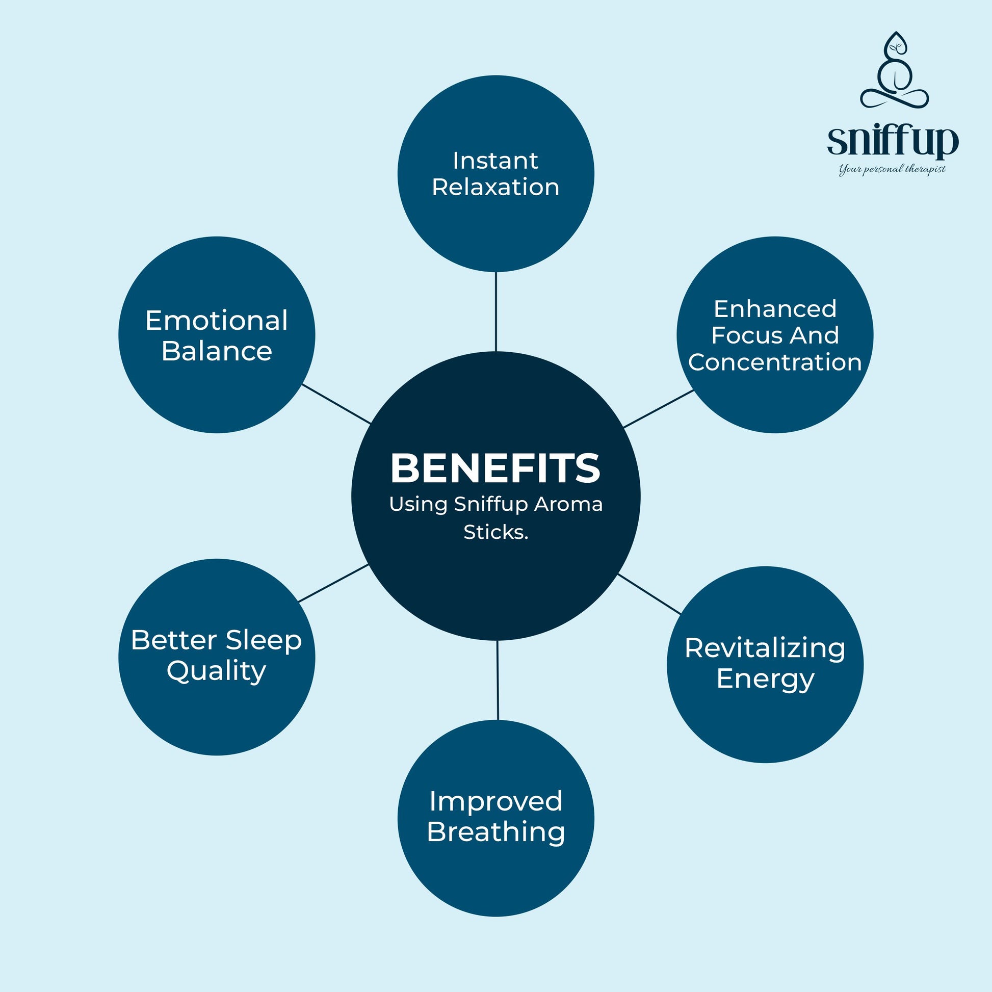 Ancient Wisdom for Today's Well-being, SniffUp aroma sticks use an ancient practice from Ayurveda, trusted for centuries. When you smell these sticks, the scents travel to your brain. They go to the amygdala for emotions and the hippocampus for memory and learning. This natural method helps you feel relaxed, focused, or calm without any risk of addiction.